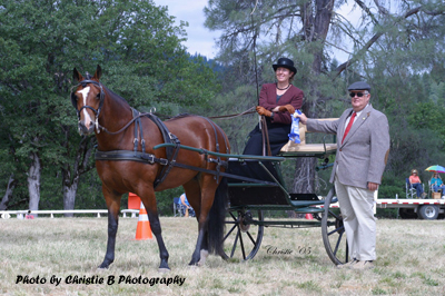 Elisa driving the Patchwork Ranch's Noble Boy to a first place finish in